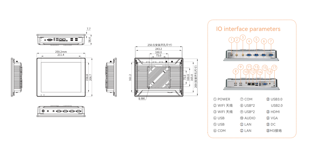 | 4 * USB interface | 1 * M3 grounding screw hole | 1 * M3 grounding screw hole | |