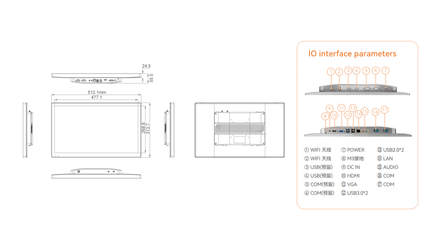 | Product Model | PPC-2111 | Pilot lamp | Reserved power status indicator light under the screen | Dimensions | 511x313x42mm |