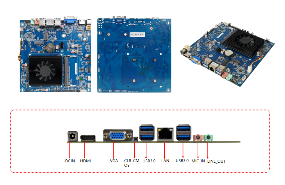 | Display output | LVDS+HDMI+VGA | 1 * CLR_ CMOS buttons | |