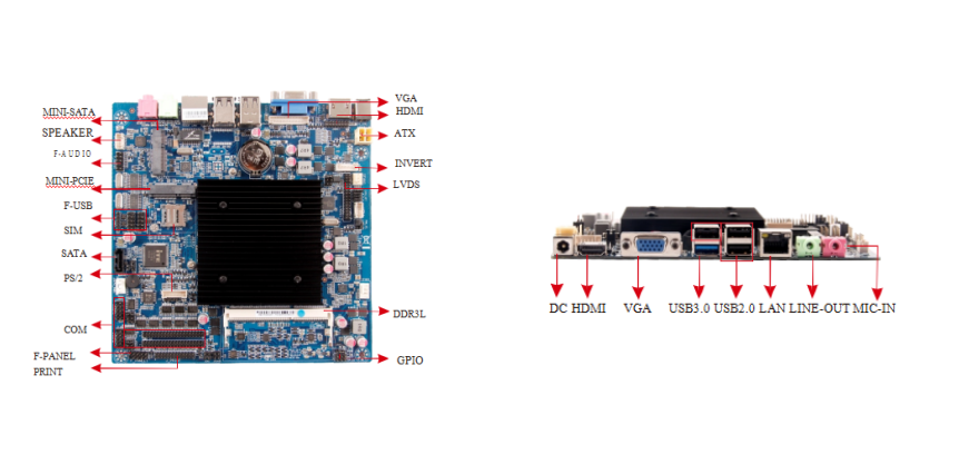 | Expansion Slot | 2*MINI-PCIE(forM-SATA/WIFI ) 1*SIM | Internal I/O | 3*F-USB2.0 PIN (Could be extended 6*USB2.0) |