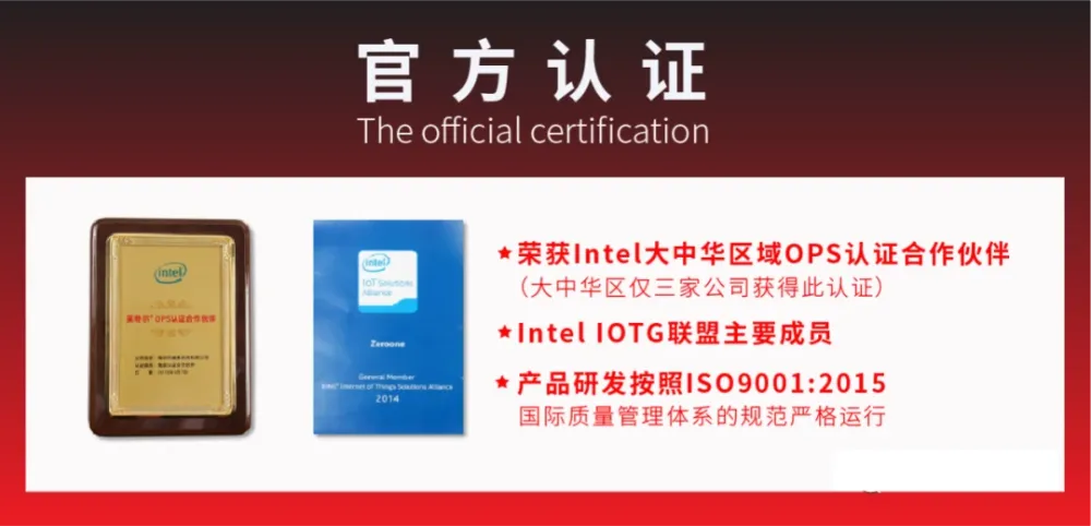 凌壹科技耕耘OPS市场多年,是Intel官方战略合作伙伴,积累了几十款成熟的OPS产品解决方案,对Intel OPS-C 产品规范制定与OPS产品推广起到了举足轻重的作用,获得Intel官方一致肯定。