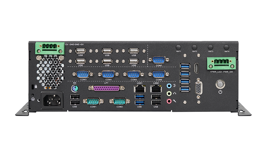 1*LAN 端口 2*USB2.0端口 1*LAN 端口 2*USB3.2端口 2*COM232端口 1*LPT端口 1*PS/2端口 2*USB2.0端口 1*AC IN端口 1*M3接地螺孔 4*天线 |