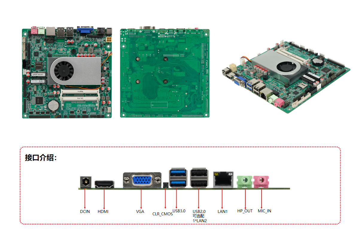 | 扩展槽 | 1*mPCIE,支持Wifi/蓝牙/4G模块扩展; 1*SIM卡槽 | ||