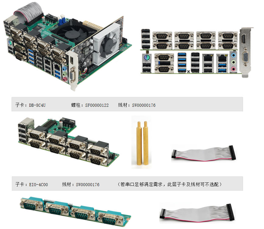 | 尺寸 | 170 x 170 mm | 子卡DB-8C4U:4*COM插针 |