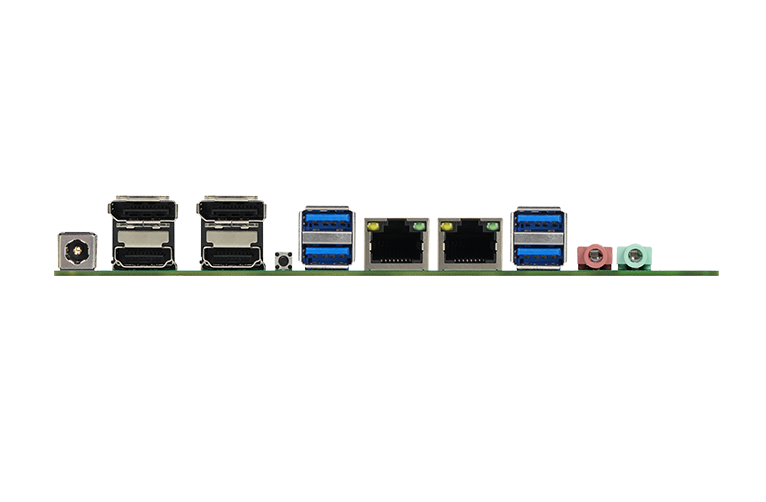| 处理器 | Intel® 12th/13th Alder lake/Raptor Lake Processor (支持U/P/H系列) | 后置I/O接口 | 1*DC_IN端口 2* HDMI+2*DP (上DP下HDMI双层座) 1*REC按钮 (支持系统还原/清CMOS) 2*USB3.2端口(Gen2 10Gbps) 1*LAN2端口(可选2*USB2.0) 1*LAN1端口 1*USB2.0+1*USB3.2 1*R_MIC 1*R_OUT |