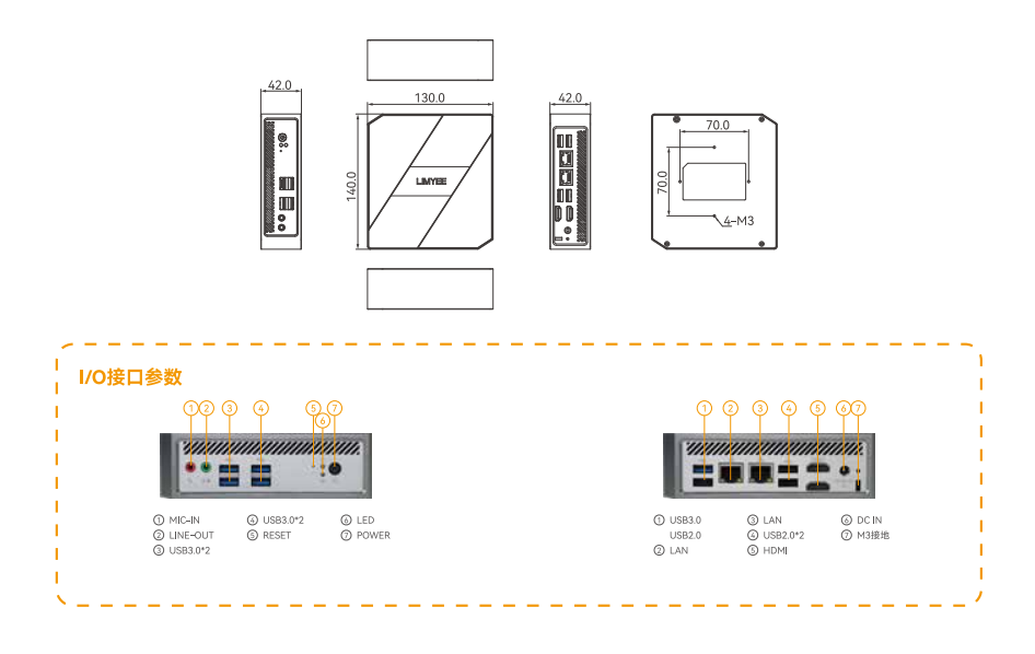 | 前I/O接口 | 1*开机按键(LED) | 1*开机按键(LED) | |