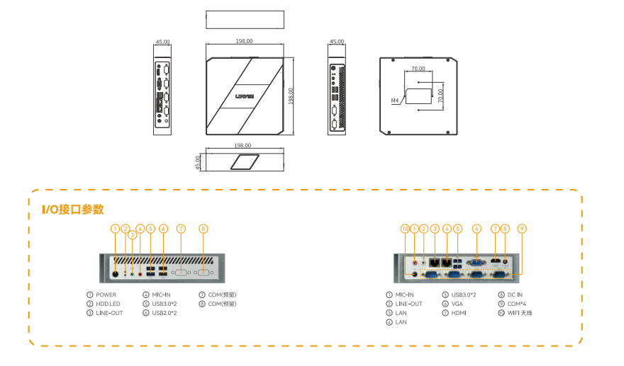 | 前I/O接口 | 1*开机按键(LED) | 1*开机按键(LED) | 1*开机按键(LED) | 1*开机按键(LED) | 1*开机按键(LED) |