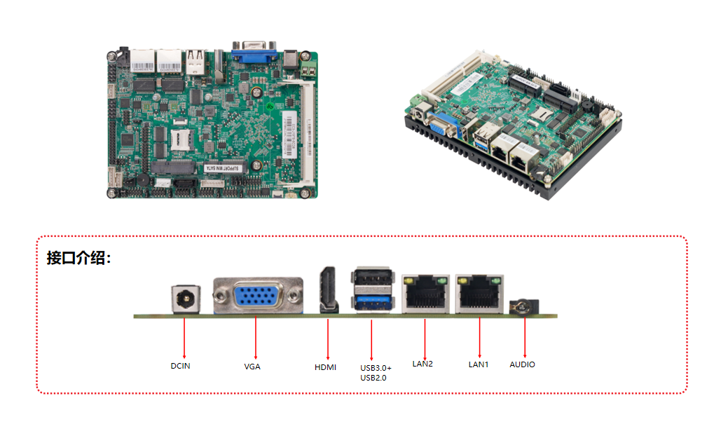 | 显示输出 | LVDS+HDMI+VGA | 1*USB3.2 Gen1(5Gbps)+USB2.0双层座 | |