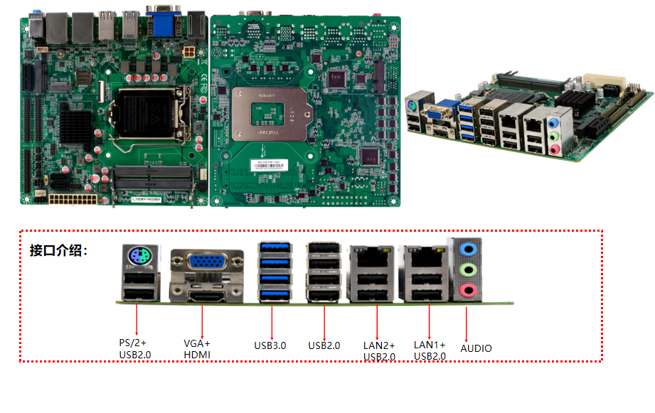 | 显示输出 | VGA 、HDMI、EDP | 4*USB2.0端口 | |