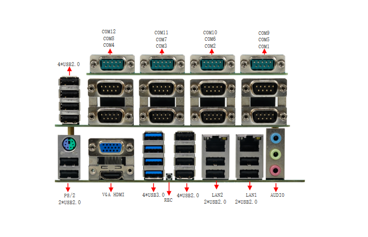 | 内存 | 2*SO-DIMM DDR4 3200MHz Max64GB | 子卡:4*USB2.0端口、8*COM端口 | |