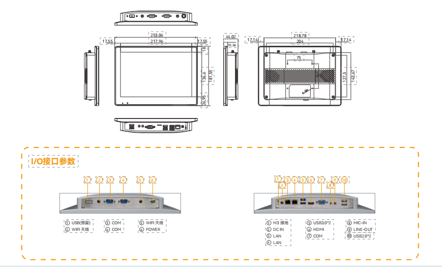 | 分辩率 | 1280*800 | 整机功耗 | < 16W(屏2.74W) | 机箱材质 | 铝合金压铸 |