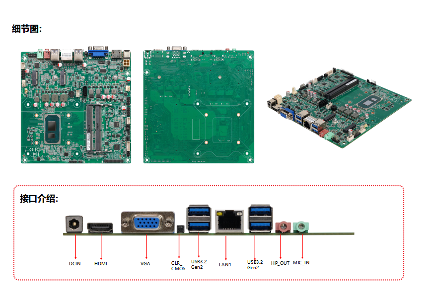 | 存储 | 1*M.2 M Key ,支持PCIEX4/SATA3.0自适应; | ||